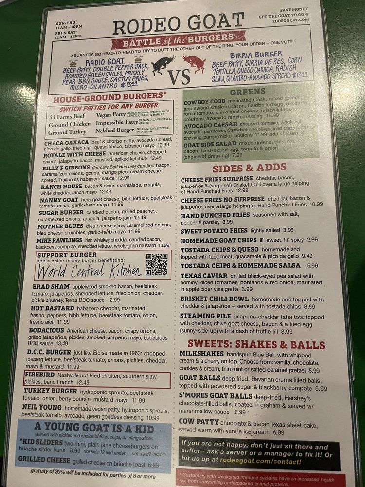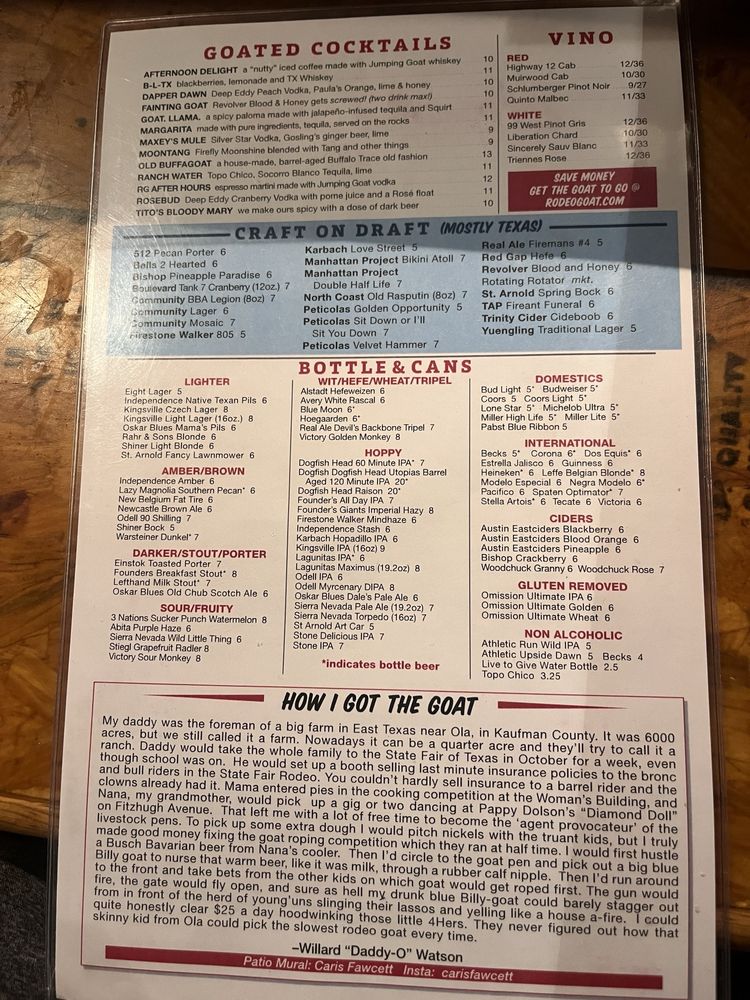 Rodeo Goat, a New American Burger Bar located in Dallas, offers a wide range of amenities like delivery, outdoor seating, and even valet parking. Customers rave about the juicy Misoumami burger and the Bodacious burger with a hint of BBQ flavor. The cheese fries surprise and unique goat cheese burger are highly recommended. The vibrant patio and delicious chili cheese fries are standout features that add to the overall laid-back vibe of the place. Despite the occasional wait for a table, the quick service and extensive beer menu make it worth the visit. With great service, affordable prices, and a diverse menu, Rodeo Goat is a must-try spot for burger enthusiasts and those looking for a fun, casual dining experience.